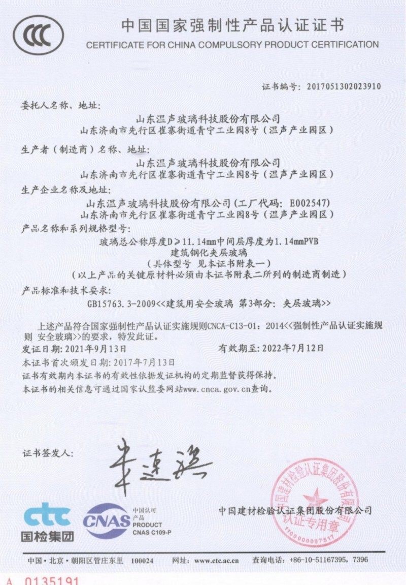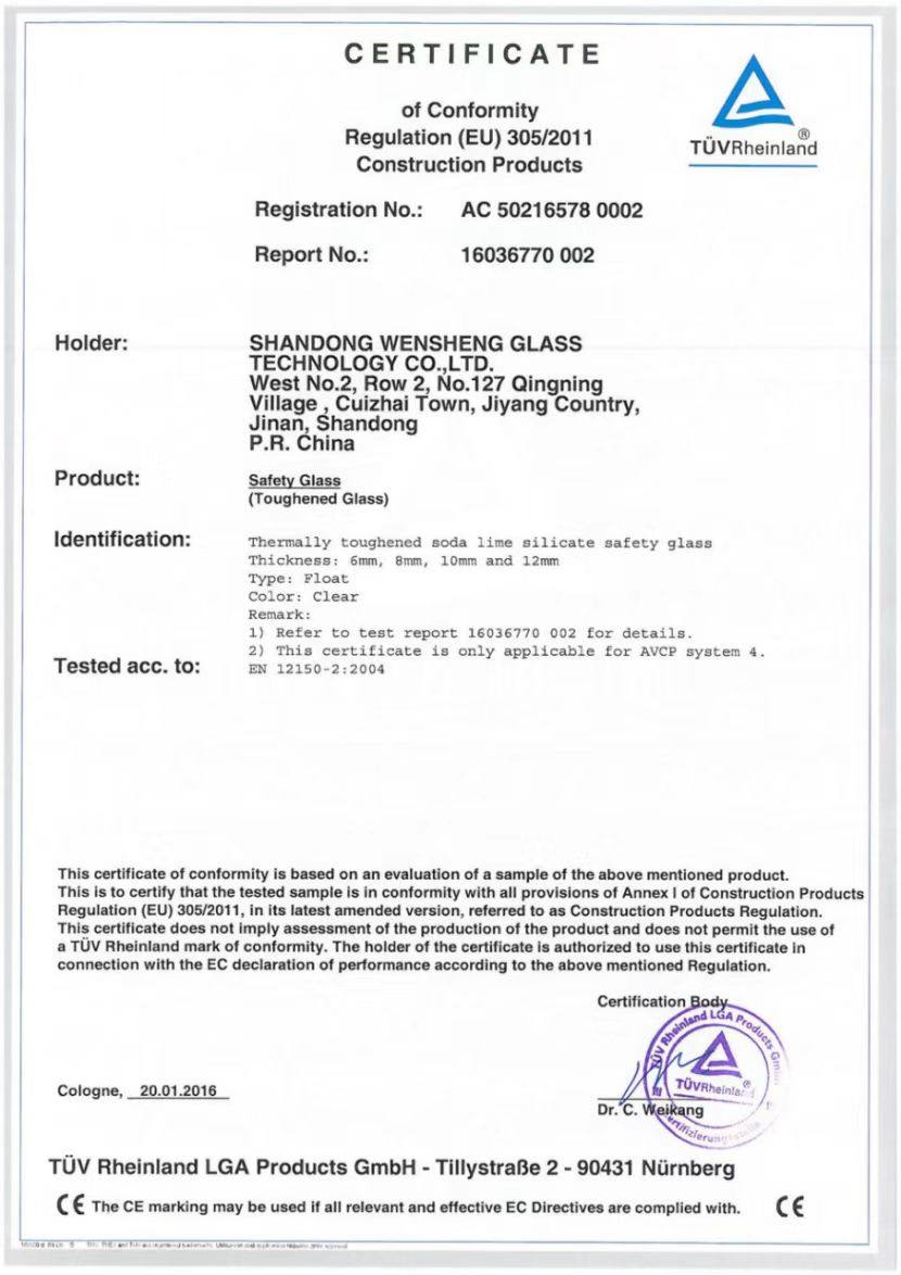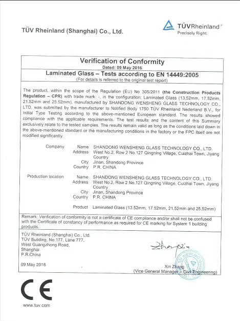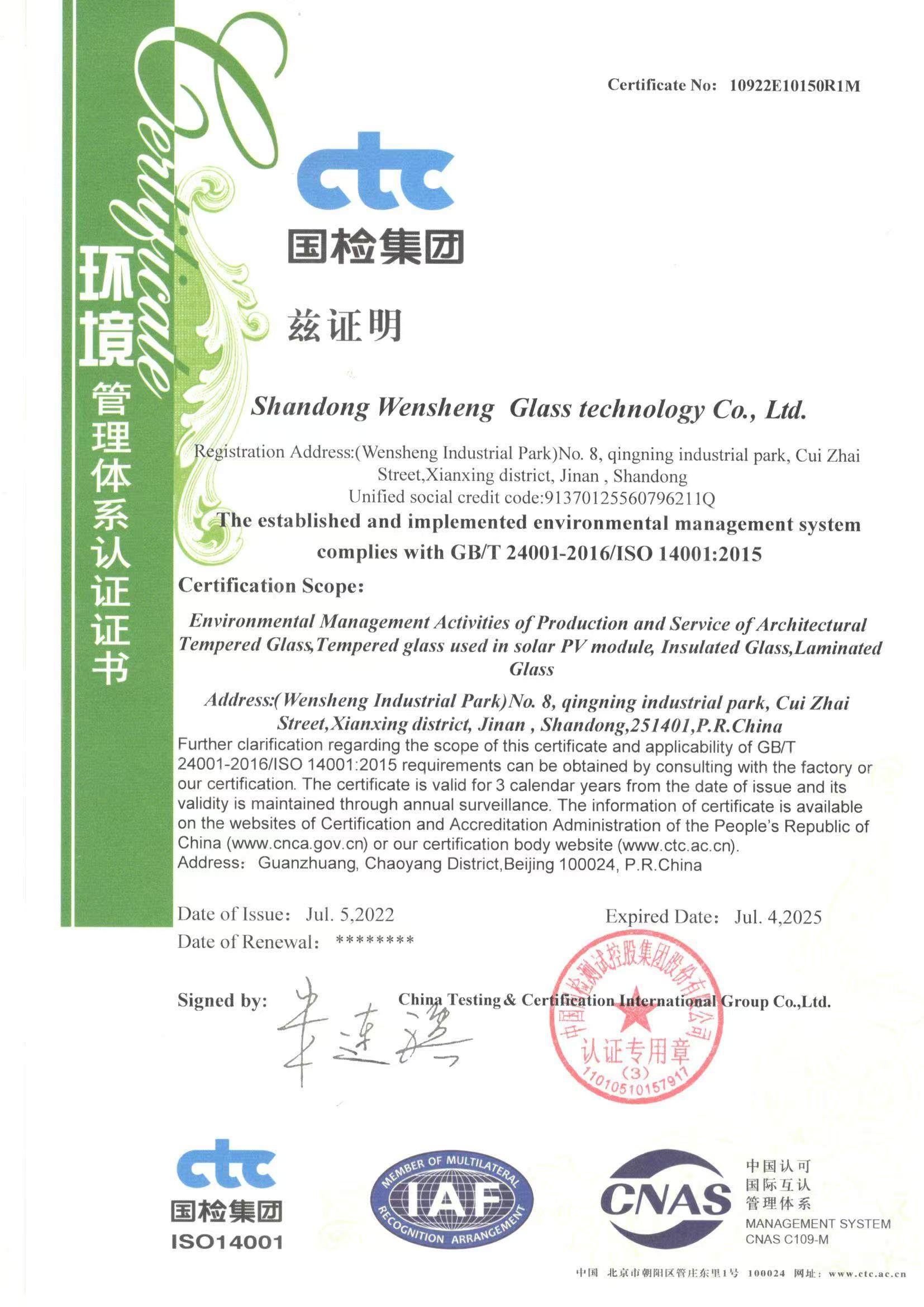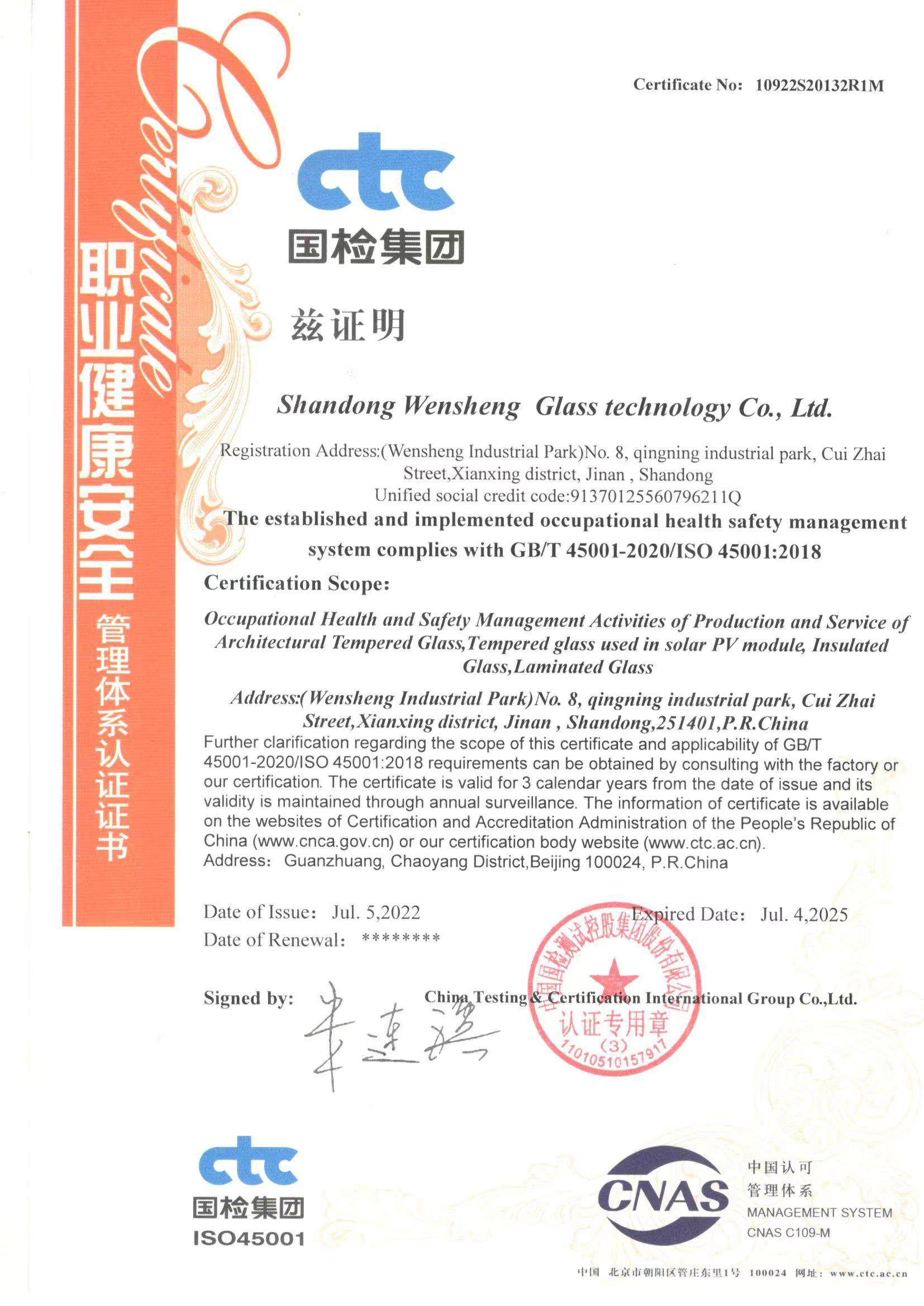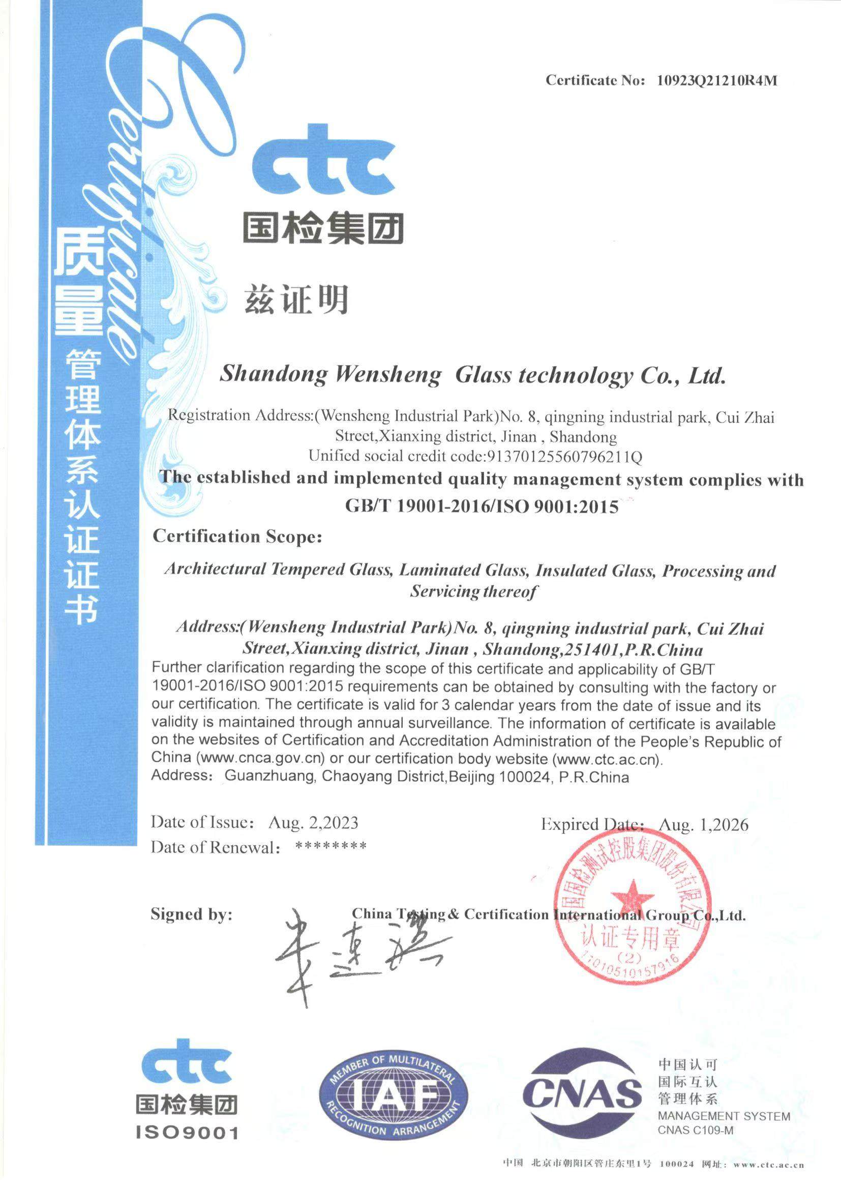 Shandong Wensheng Glass Technology Co., LTD., located in Jinan City, was established in 1991. It is a professional enterprise in the architectural glass industry, with an annual output value of over 300 million yuan. The company covers 65,000 square meters and has more than 300 employees. As a national high-tech enterprise, Wensheng has obtained international certifications such as ISO 9001, ISO 14001, ISO 45001, CE Certification, AS/NZS, CCC, IGCC, and SGCC.